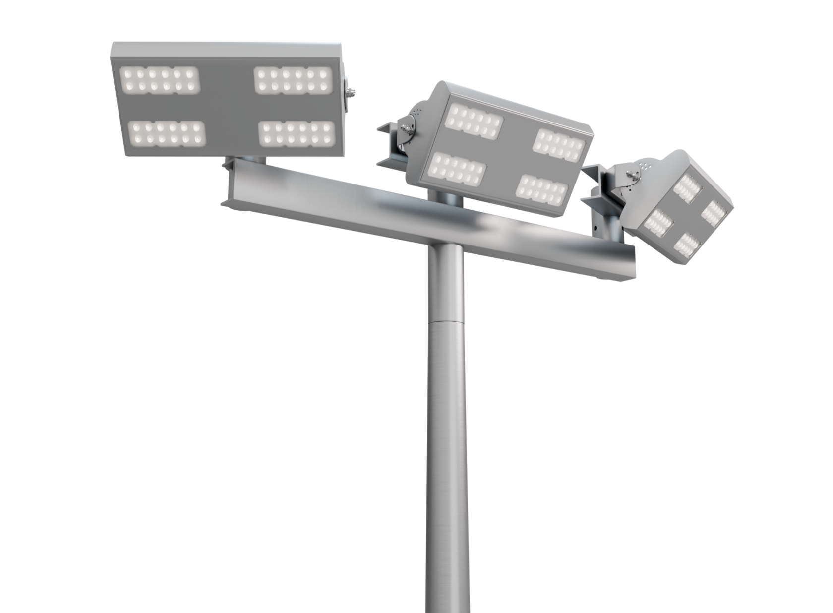 В оголовниках кронштейны поворачиваются на 360° вокруг оси и фиксируются в нужном положении с помощью винтов. Это позволяет точно направить свет под геометрию площадки.